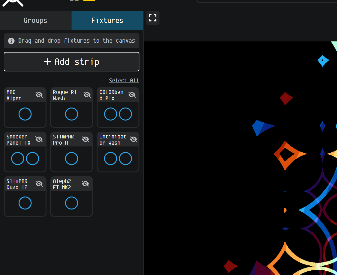 With the latest beta update for version 26.1.23.3, I see on the website that there is some kind of visualizer now? I wanted to learn more about this, and try to gain a better understanding on how the mapping works. I have 2 different fixtures. One of them is the OPPSK 200W 720LED RGBW DJ Strobe Light, and the other is the U'King ZQ02341. Can you provide insight on "how to" set these up and show these on the mapping screen/visualizer? I have a screen grab of the website to support what I was seeing. Thank you in advance!
